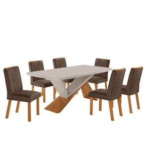 Conjunto Sala de Jantar Mesa Texas Tampo 180cm Canto Copo de Mdf/vidro e 6 Cadeiras Kate Marrom/ Naturalle/Off White/ Serig. OFF - Branco