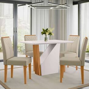 Conjunto Sala de Jantar Mesa Veneza 120cm com 4 Cadeiras Amanda Ypê/Off White/Ja01 - New Ceval