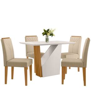 Conjunto Sala de Jantar Mesa Veneza 120cm com 4 Cadeiras Amanda Ypê/Off White/Ln04 - New Ceval