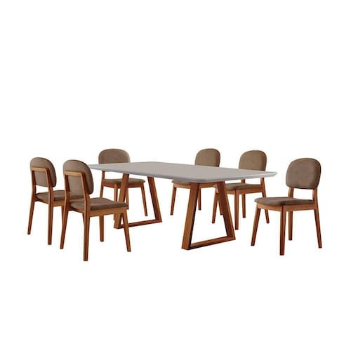 Conjunto Sala de Jantar Mesa Viena 160x90cm Tampo Retângular Vidro/MDF Off White com 6 Cadeiras Évora - Móveis Minas