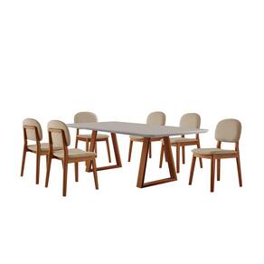 Conjunto Sala de Jantar Mesa Viena 160x90cm Tampo Retângular Vidro/MDF Off White com 6 Cadeiras Évora - Móveis Minas