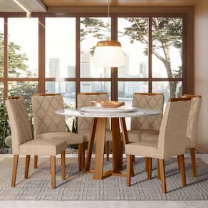 Conjunto Sala de Jantar Mesa Vitoria 1,35 com Tampo Giratório e 6 Cadeiras Sarah Ypê/Off White/Ln05 - New Ceval