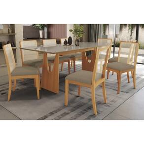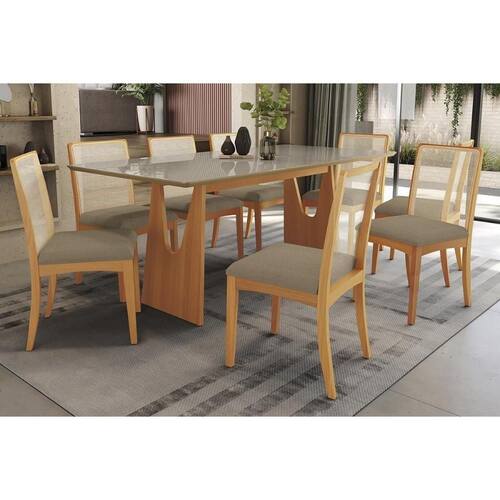 Sala de Jantar Completa Mila Premium Madeira Maciça c/ Tampo Madeirado c/ Vidro 200x100cm e 8 Cadeiras Lara Carvalho/Freijo Bronze - Boucle Bege Fendi - Kappesberg Abaixo segue os produtos do KIT: Sala de Jantar Completa Mila Premium Madeira Maciça c/ Tampo Madeirado c/ Vidro 200x100cm e 8 Cadeiras Lara Carvalho/Freijo Bronze - Boucle Bege Fendi - Kappesberg