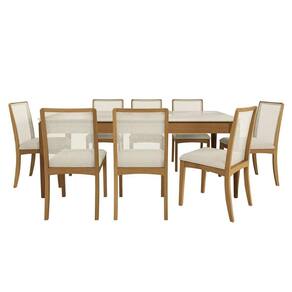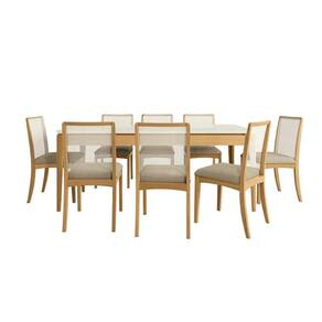 Sala de Jantar Completa Mira Premium Madeira Maciça c/ Tampo Madeirado c/ Vidro 200x100cm e 8 Cadeiras Lara Carvalho/Off White - Linho Bege Argila - Kappesberg