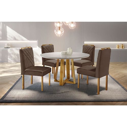 Conjunto Sala de Jantar 4 Lugares Mesa Redonda e Cadeiras - Móveis Mix Exclusividade de Fábrica Mesa Com 4 Cadeiras - Móveis Mix. Com os Produtos Móveis Mix Você Leva Conforto e Beleza Para o Seu Lar. Design Moderno e Sofisticado.
