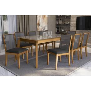 Sala de Jantar Completa Petra Premium Madeira Maciça c/ Tampo Madeirado c/ Vidro 200x100cm e 8 Cadeiras Lara Carvalho/Freijo Bronze - Boucle Grafite - Kappesberg Abaixo segue os produtos do KIT: Sala de Jantar Completa Petra Premium Madeira Maciça c/ Tampo Madeirado c/ Vidro 200x100cm e 8 Cadeiras Lara Carvalho/Freijo Bronze - Boucle Grafite - Kappesberg