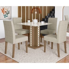 Conjunto Sala De Jantar Quadrada Mesa Isis 90cm E 04 Cadeiras Josi Poliman Móveis Carvalho Com Grafite Com design contemporaneo a Mesa de Jantar Isis com 04 cadeiras e perfeita para completar seu ambiente. Possui base quadrada que traz mais robustez com aplique em MDF 3D auto adesivo para uso opcional. Tampo quadrado brilho 90x90cm em MDP 25mm com bordas chanfradas que valorizam o produto deixando o modelo ainda mais requintado. Acompanha 04 cadeiras modelo Josi resistentes, ergonomicamente projetadas para proporcionar mais conforto em seus momentos entre amigos e familiares. Cadeiras revestidas em tecido suede aveludado liso que oferece maior suavidade e maciez, pes em MDF 25mm, assentos com espuma densidade D20 que garante uma excelente acomodacao. Produtos com sapatas plasticas garantindo melhor durabilidade e estabilidade, acabamento em pintura UV que preserva a coloracao alem de facilitar na limpeza, ecologicamente corretos com embalagens preparadas cuidadosamente afim de evitar permitindo que os produtos cheguem em perfeito estado em sua casa. Permite a combinacao com os mais variados ambientes. Qualidade que so a Poliman oferece em seus produtos. DIMENSOES Altura: Mesa: 80,00 / Cadeira: 96,00cm Largura: Mesa: 90,00 / Cadeira 41,00cm Profundidade: Mesa: 90,00 / Cadeira 44,00cm Peso: 60,4Kg