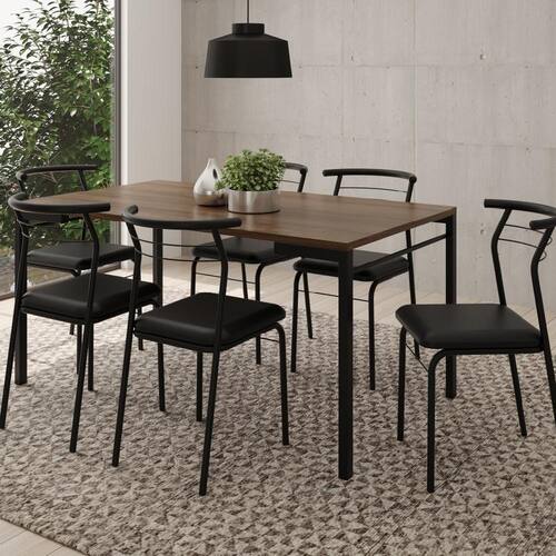 O Conjunto Sala de Jantar Santana Carraro reúne materiais que conseguem transmitir ao ambiente muito estilo, transformando a sua sala de jantar em um local de destaque na casa. Com encosto moldado anatomicamente, a cadeira proporciona todo o conforto necessário. Além disso, a mesa com tampo madeirado é perfeita para dar o toque aconchegante indispensável para esse espaço.
