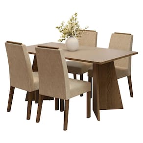 A mesa em acabamento em tom amadeirado Rustic e o tampo crema, transmite leveza, enquanto as cadeiras revestidas em tecido Imperial adicionam ainda mais conforto. A combinação desses acabamentos cria um espaço elegante e perfeito para momentos de convivência.