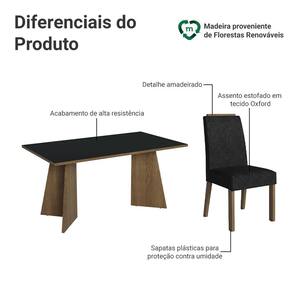 A mesa, com acabamento em tom amadeirado Rustic e o tampo em preto, traz sofisticação e resistência, criando um visual moderno para o ambiente. As cadeiras, revestidas em tecido Suede Oxford, oferecem ainda mais conforto e elegância à sua casa.