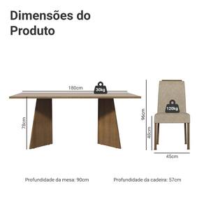 Com seis cadeiras estofadas, cada detalhe, incluindo o acabamento amadeirado no topo, proporciona elegância. A mesa, com base em formato trapézio e tampo em MDP, oferece estabilidade e amplo espaço para acomodar toda a família, tornando cada refeição ainda mais agradável.