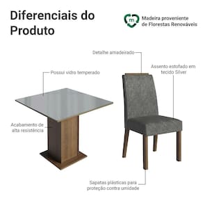 Com estrutura da mesa em tom amadeirado Rustic, tampo em Cinza com vidro sobreposto e cadeiras em tecido Suede Silver, o conjunto Mendonza combina tons neutros e detalhes amadeirados, criando um ambiente elegante e acolhedor, ideal para unir estilo, conforto e funcionalidade mesmo em espaços compactos.
