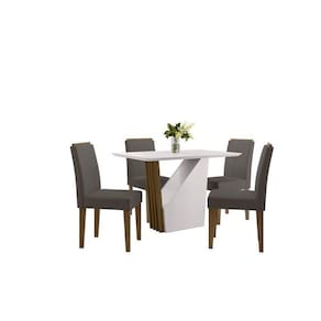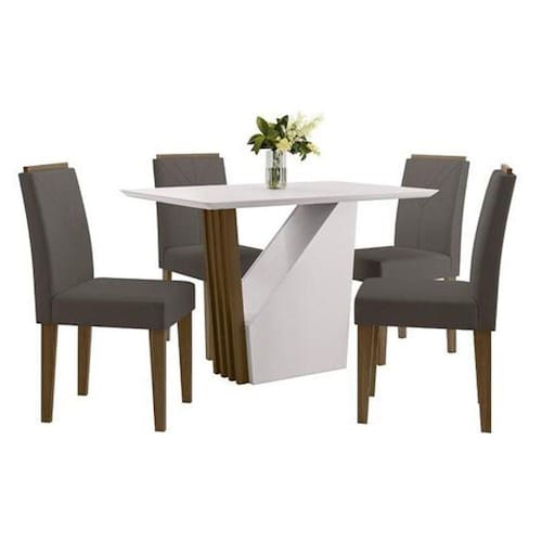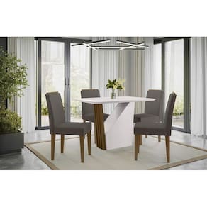 Produto: Conjunto Sala de Jantar Veneza 1,20m x 0,80m e 4 Cadeiras Amanda Imbuia / Off White / Veludo Cinza - New Ceval Cor: Imbuia / Off White / Veludo Cinza Garantia: 03 meses Descrição: Mesa Veneza 1200X800 Comprimento: 120,00 cm Largura: 80,00 cm Altura: 80,00 cm Peso: 34,70 Kg Estrutura: Base: MDF 15mm - Tampo: MDF 15mm + Engrosso + Vidro 3mm Formato do Tampo: Retangular Espessura do Tampo: 30mm Tipo de Vidro: Normal Espessura do Vidro: 3mm Necessita Montagem: Sim