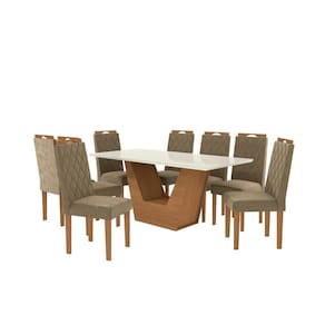Tanto o encosto quanto o assento são estofados e recobertos com tecido veludo bege, garantindo um toque suave e conforto em todos os momentos. Os diferenciais ficam por conta das costuras na parte interna do encosto, que proporcionam estilo e elegância, e o puxador em madeira com pegador, além de beleza, facilita o manuseio, evitando sujar ou danificar o tecido, garantindo uma composição estilosa e sofisticada para sua sala de jantar. Renove sua sala de jantar e aproveite cada momento com um Conjunto da Sala de Jantar da Kappesberg.