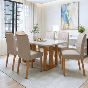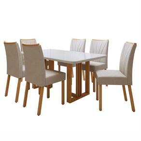 É ideal para refeições em família? Claro, ela acomoda 6 pessoas com conforto. Medida da Mesa (A x L x P): 78cmx170cmx90cm Peso da Mesa: 36,26 kg Mesa suporta até: 50 kg Acabamento da Cadeira/Banco: Pintura Acabamento da Mesa: Pintura UV Ambiente Principal: Sala de Jantar Cadeira/Banco Estofada: Encosto e Assento Estofados Cadeira/Banco estofada: Encosto e Assento Estofados Cadeira/Banco suporta até: 120 kg Cadeira/Banco Suporta Até: 120.0000 codigo_ean: 7900288255211 Complexidade da Montagem: Alta: deve ser montado por um montador especializado Cor: Amêndoa Clean/Off White/Naturale Creme Cor do Produto: Amêndoa Clean/Off White/Naturale Creme Cor Secundária: Marrom De Canto (Canto Alemão): Não Enchimento do Assento: Espuma D-20 Enchimento do Encosto: Espuma D-18 Escala de Brilho: Fosco Espessura do Tampo: 44 mm Estrutura do Assento: MDF/MDP/Espuma Formato do Tampo: Retangular Itens Inclusos: 1 Mesa, 6 Cadeiras, Kit Ferragens e Manual de Montagem Linha ou Coleção: Jade/Maxi/Bold Manual de Montagem e Instalação: https://product-hub-prd.madeiramadeira.com.br/845982465/documents/034268e0-3c1c-40bb-b488-2fe9b1c8cec1326636473217599312986899.pdf Marca: Móveis Lopas Material da Base da Mesa: MDF/MDP Material da Estrutura da Cadeira: MDF/MDP Material do Tampo: Vidro/MDF Material Principal: MDF/MDP Medida da Cadeira/Banco (A x L x P): 97cmx42cmx56cm Medida do Tampo (L x C x E): 170cmx80cmx44mm Mesa Extensível: Não Necessita Montagem: Sim Origem do Produto: Nacional Peso da Cadeira/Banco: 8,65 kg Possui Apoio Para os Pés: Não Possui Vidro: Sim Quantidade de Cadeiras: 6 Quantidade de Lugares: 06 Recomendações de Uso, Manutenção e Limpeza: Limpar com pano macio e levemente umedecido. Não utilizar solventes a base e de inflamáveis. Não utilizar produtos abrasivos. Revestimento da Cadeira/Banco: Veludo Sistema de Montagem: Parafusos. Tipo de Assento: Fixo Tipo de Encosto: Fixo