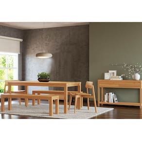 Conjunto Sala Jantar Nature: Aparador, Mesa, Banco e Cadeiras Rústico Claro Madeira Pinus