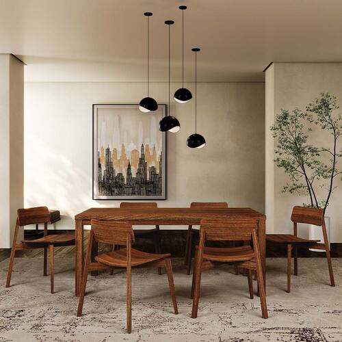 Conjunto Sala Jantar Nature: Mesa com 6 Cadeiras Rústico Escuro Madeira Pinus