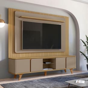Este conjunto de Rack e Painel é o complemento perfeito para sua sala. Com prateleiras espaçosas e um design elegante, este móvel é perfeito para organizar seus objetos e aparelhos eletrônicos. Adicione um toque de sofisticação à sua sala com este conjunto de rack e painel Roma.