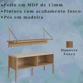O Conjunto de Sapateira e Prateleira Oslo Móveis que agregam muito ao dia a dia, possuem diversas funções: sapateira possibilita uma melhor organização para armazenar os sapatos, banco possibilita sentar-se enquanto põe ou retira os sapatos, a prateleira tem a função de pendurar ou acomodar diversos objetos. Produzida em MDP com acabamento BP, pés de madeira maciça e assento estofado. Traz como característica um traço artesanal, suave e acolhedor. Com design escandinavo minimalista, remete em suas linhas retas a simplicidade, charme e funcionalidade que sua casa merece. Este produto chegará em sua casa separado em 03 volumes.