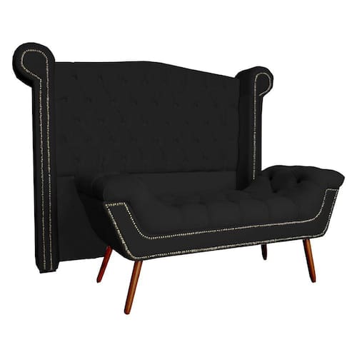 Conjunto Sienna Cabeceira e Recamier Solteiro 90 Cm Suede Preto - LM DECOR