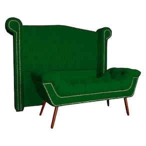 Conjunto Sienna Cabeceira e Recamier Solteiro 90 Cm Suede Verde - LM DECOR