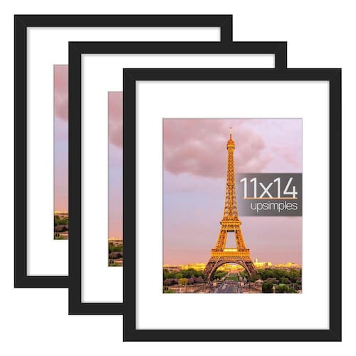 Conjunto de 3 molduras upsimples 11x14, feitas de vidro de alta definição para 8x10 com tapete ou 11x14 sem tapete, moldura fotográfica preta para montagem na parede