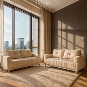 O Sofá 3x2 Lugares Leona em Linho da Bom Pastor une sofisticação, conforto e funcionalidade para transformar sua sala. Composto por dois módulos um de 1,95 m (3 lugares) e outro de 1,55 m (2 lugares) oferece uma solução prática e elegante para diferentes tamanhos de ambiente. Com 90 cm de altura e 82 cm de profundidade, é revestido em linho de alta qualidade e estruturado com espuma D33 e percintas elásticas, garantindo firmeza e maciez ao sentar. Acompanha almofadas decorativas que dão um toque de charme extra à decoração. Enviado direto da fábrica na caixa, o conjunto proporciona fácil transporte, entrega prática e montagem simples.
