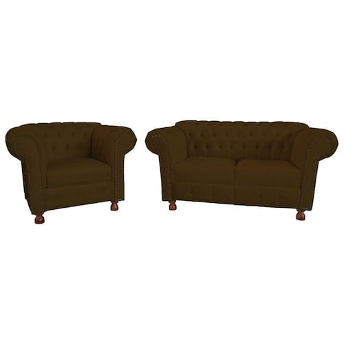 CONJ SOFÁ NAMORADEIRA Chesterfield Luiz XV Capitone SUEDE MARROM