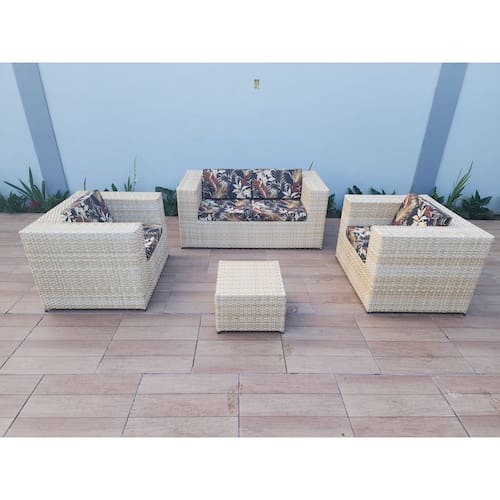 Revestimento trançado fibra sintética com tratamento Uv, resistente a sol e chuva, podendo ser lavado normalmente sem risco de danos