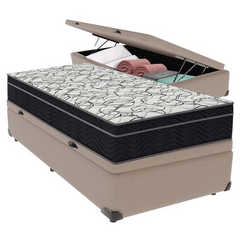 Conjunto Solteiro Cama Bege Box Colchão Extra Firme Ortobom Bege