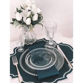 Conjunto Sousplat e Prato Raso 28cm em Cristal Pearl Wolff Transparente Mesa Posta