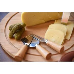 Tábua com talheres para queijo. Sensacional e lindo conjunto. Feita em bambu prensado. Ecologicamente correto. Muito mais leve que outros tipos de madeira. É antibacteriana. Contem 1 tábua e 4 talheres. Medida de 30x30x1,5cm. Os talheres medem 12cm. Você causará inveja nos seus amigos/familiares ao utilizar este conjunto tomando seu vinho. Você não pode ficar sem essa peça.Medidas aproximadas do produto- Comprimento: 30 cm- Altura: 3 cm- Largura: 30 cm- Peso: 870 g
