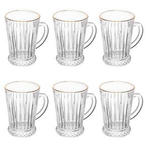 Conjunto Taça para Cappuccino 6 Peças 210 ml Deli Diamante com Fio de Ouro Lyor