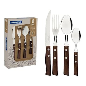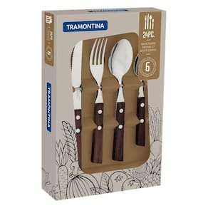 Conjunto Talheres 24 Peçass Tradicional Cabo Madeira Tramontina