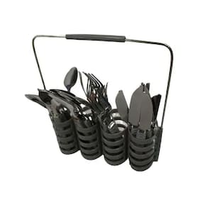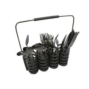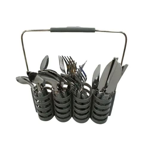 Kit completo: 6 garfos, 6 facas, 6 colheres de sopa e 6 colheres de sobremesa. Suporte com alça: fácil de transportar e manter tudo sempre à mão. Leve mais charme e funcionalidade para suas refeições com o Jogo de Talheres 24 Peças com Suporte!