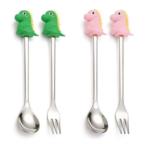 O Kit Talheres Infantil Dinossauro é perfeito para deixar a hora da refeição mais divertida! Com cabo em formato de dinossauro nas cores verde e rosa, é ideal para crianças que adoram esse tema super fofo e aventureiro.Fabricados com haste em aço inoxidável resistente e cabo em material durável, os talheres são leves, fáceis de segurar e ideais para o uso infantil no dia a dia.Características:Cabo decorativo em formato de dinossauroCores disponíveis: verde e rosaHaste em aço inoxLeve, resistente e fácil de limparIdeal para uso infantilKit com 2 peças: colher e garfo