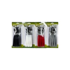 O Conjunto de Talheres de Inox 12 Peças N246351-9 - Mas é perfeito para quem busca praticidade, durabilidade e um toque de elegância na hora das refeições. Composto por 4 colheres, 4 facas e 4 garfos, este conjunto é ideal para o uso diário, oferecendo um serviço completo para sua mesa. Fabricados em aço inox de alta qualidade, os talheres possuem um cabo de plástico resistente, que proporciona maior conforto e segurança ao mesmo. O design moderno e o acabamento polido conferem um toque sofisticado, tornando este conjunto uma escolha certa para qualquer ocasião, desde o almoço do dia a dia até um jantar mais especial. Fácil de limpar, resistente e elegante, o Conjunto de Talheres Pero é uma combinação perfeita de estilo e funcionalidade para sua mesa.