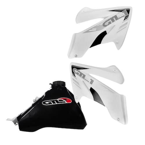 Anuncio referente a tanque + aletas. Modifique o visual da sua DT 180 com praticidade e segurança. Estética do tanque baseada na moto DT 180 e aletas no estilo trilha incrementam o visual das DT's 180. Este conjunto Tanque + Aletas , trás á sua DT 180 um visual atualizado, aerodinâmico, resistente e seguro. Tanque: Preto Par de Aletas: Branco Peso líquido do tanque: 2,5kg vazio . Capacidade do tanque: 11 litros. Produzidos em termoplástico de alta resistência com pigmentos à prova de raios UV ultravioleta . Obs: Cores e modelos dos adesivos podem variar conforme disponibilidade. Os adesivos que acompanham os produtos compõe a embalagem dos mesmos e tem pouca durabilidade.