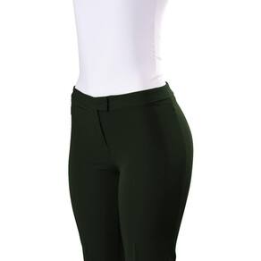 Calça de cós médio, Longa em corte reto, sem bolsos e 1 botão frontal.