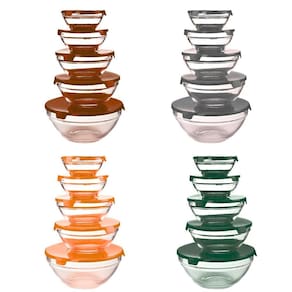 Conjunto Tigela Vidro Bowl Marmita Tampa 5 Peças Herméticos Cor: Laranja Kit com 5 Potes de Vidro - Conjunto de Tigelas Bowl para Mantimentos