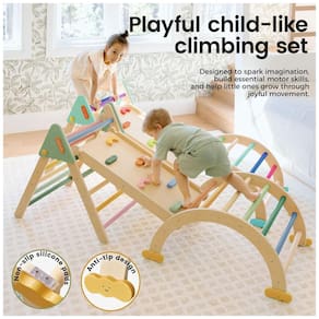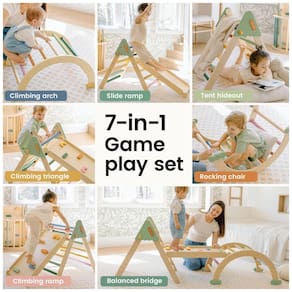Segurança e Estilo em um só Produto! Este conjunto de escalada Montessori foi projetado com foco em segurança e estética, incluindo um estável pikler triangle combinado com uma rampa reversível e um balanço antitombamento. Almofadas de silicone antiderrapantes e designs reforçados garantem uma diversão segura para os pequenos. Com esta estrutura, os pais podem relaxar enquanto as crianças desfrutam de brincadeiras internas seguras e estimulantes. Estabilidade Reforçada em Cada Detalhe! Desde almofadas de silicone até blocos de canto robustos, este conjunto de pikler triangle é projetado para permanecer estável, mesmo durante as sessões de escalada mais enérgicas. Seja balançando ou escorregando, as crianças desfrutam de uma experiência de brincadeira segura e estável que desenvolve confiança e coordenação. Conjunto 7 em 1 para Aventuras Infinitas! Mais do que apenas um pikler triangle, este brinquedo de escalada para crianças inclui sete maneiras de brincar: escorregar, escalar, balançar, rastejar, equilibrar, esconder e explorar. Mantém mentes curiosas e corpos ativos totalmente envolvidos, perfeito para o desenvolvimento infantil no estilo Montessori. Dobrável e Fácil de Armazenar! Ideal para famílias modernas, este conjunto de pikler triangle Montessori pode ser dobrado e armazenado facilmente. Uma solução minimalista para aqueles que buscam diversão e funcionalidade sem bagunça. Feito para Exploradores em Crescimento! Fabricado em madeira durável e segura para crianças, este conjunto de escalada pikler triangle suporta até 160 libras (72 kg), sendo ideal para crianças pequenas até as mais crescidas enfrentarem novos desafios. Projetado para durar em cada estágio de desenvolvimento, de 1 a 10 anos. Um Presente Atencioso em Cores Deslumbrantes! Seja nas cores suaves de Morandi ou nos tons alegres do arco-íris, este conjunto estiloso de escalada Montessori é um presente memorável para aniversários, feriados ou qualquer sala de brincar inspirada na metodologia Montessori. Função encontra beleza neste item essencial para pais responsáveis.