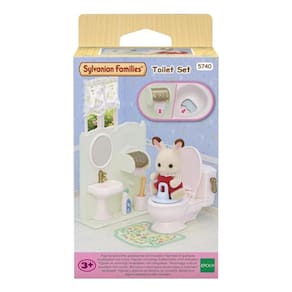 O Conjunto de Toalete vem com vaso sanitário, pia, produtos de limpeza, penico e tapetinhoÉ possível acionar a descarga puxando a alavanca do vaso sanitário e o papel higiênico pode ser desenrolado