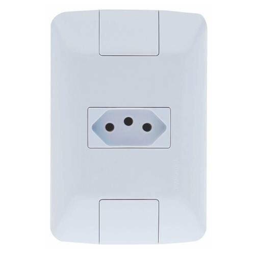 CONJUNTO TOMADA 20A - LINHA ARIA - TRAMONTINA As placas da linha Aria são fabricadas em termoplástico com acabamento brilho na cor branca, que não retém poeira, unindo qualidade e praticidade. O sistema é modular, com o suporte incorporado na placa. Possuem furo oblongo para facilitar a fixação e a regulagem da placa à parede. Possuem furos para a fixação em parede de madeira. A fixação não é aparente. Os bornes são travados por parafusos, para melhor fixação dos condutores.
