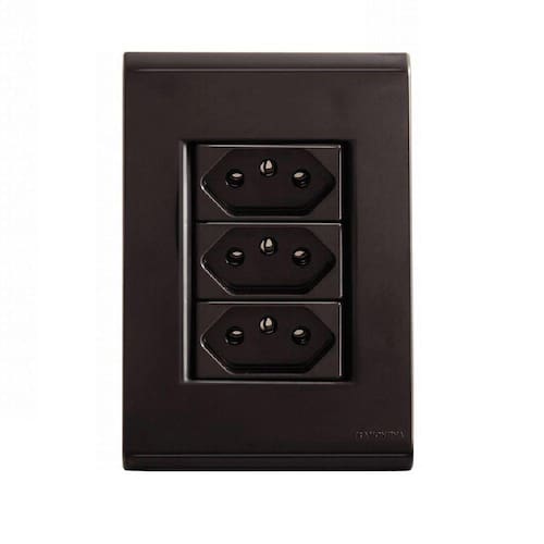 Conjunto Tomada Tripla 10A Grafite 57173/076 Tramontina Liz Conjunto 3 Tomadas 10A 2p+T 4x2 Grafite 57173/076 Linha Liz Tramontina