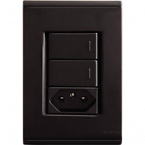 Cada detalhe faz a diferença em um bom projeto elétrico e o conjunto 4x2 Tramontina Liz grafite com 2 interruptores simples 10 A 250 V e 1 tomada 2P+T 10 A 250 V entrega exatamente o que você precisa. Com design modular e sistema de ajuste gradual entre a placa e o suporte, garante um encaixe perfeito na parede e um acabamento limpo, sem parafusos aparentes. Produzido em termoplástico com acabamento em brilho, o conjunto não retém poeira, o que facilita a limpeza e preserva o visual por mais tempo. Conta ainda com furo oblongo, que ajuda na regulagem durante a instalação, além de orifícios específicos para fixação em superfícies de madeira. Praticidade, qualidade e visual moderno reunidos em uma única peça.