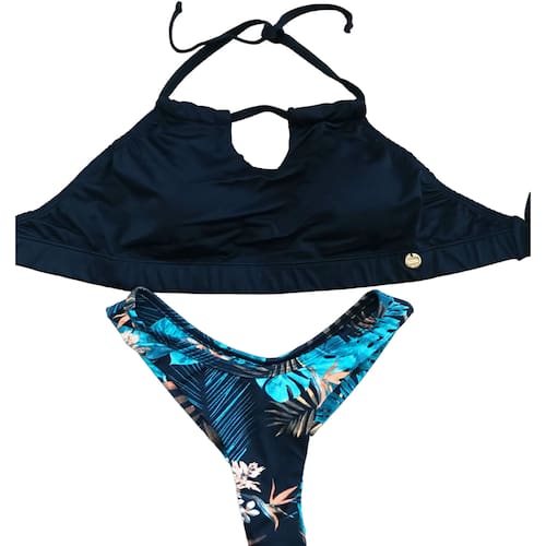 Conjunto Trapezio Com Decote Liso Preto + Tanga Fio Duplo - Estampado - G