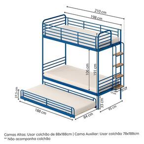 1x Beliche Infantil/juvenil Teko Azul / Álamo Largura: 210 cm Altura: 191 cm Peso: 80 kg Profundidade: 95 cm Necessita Montagem: Sim