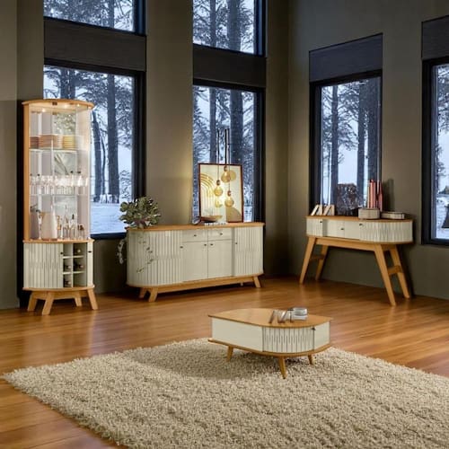 O Conjuto de Aparador, Buffet, Cristaleira e Mesa de Centro irão completar o seu ambiente, ambas possuem design único e inovador que irão deixar qualquer espaço ainda melhor. Proporcionando um ambiente elegante e organizado para sua casa.