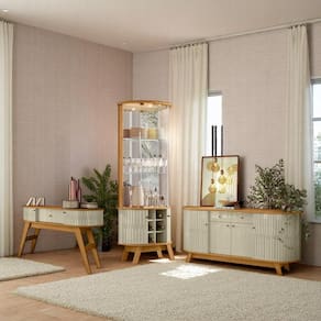 O Conjuto de Aparador, Buffet e Cristaleira irão completar o seu ambiente, ambas possuem design único e inovador que irão deixar qualquer espaço ainda melhor. Proporcionando um ambiente elegante e organizado para sua casa.