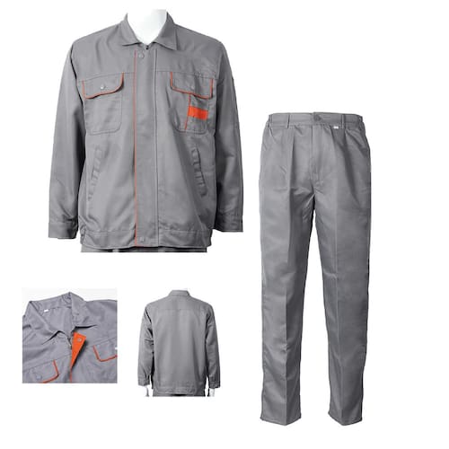 Jaqueta de trabalho de manga comprida, gola, fecho com zíper e botão de pressão, fácil de colocar e tirar.